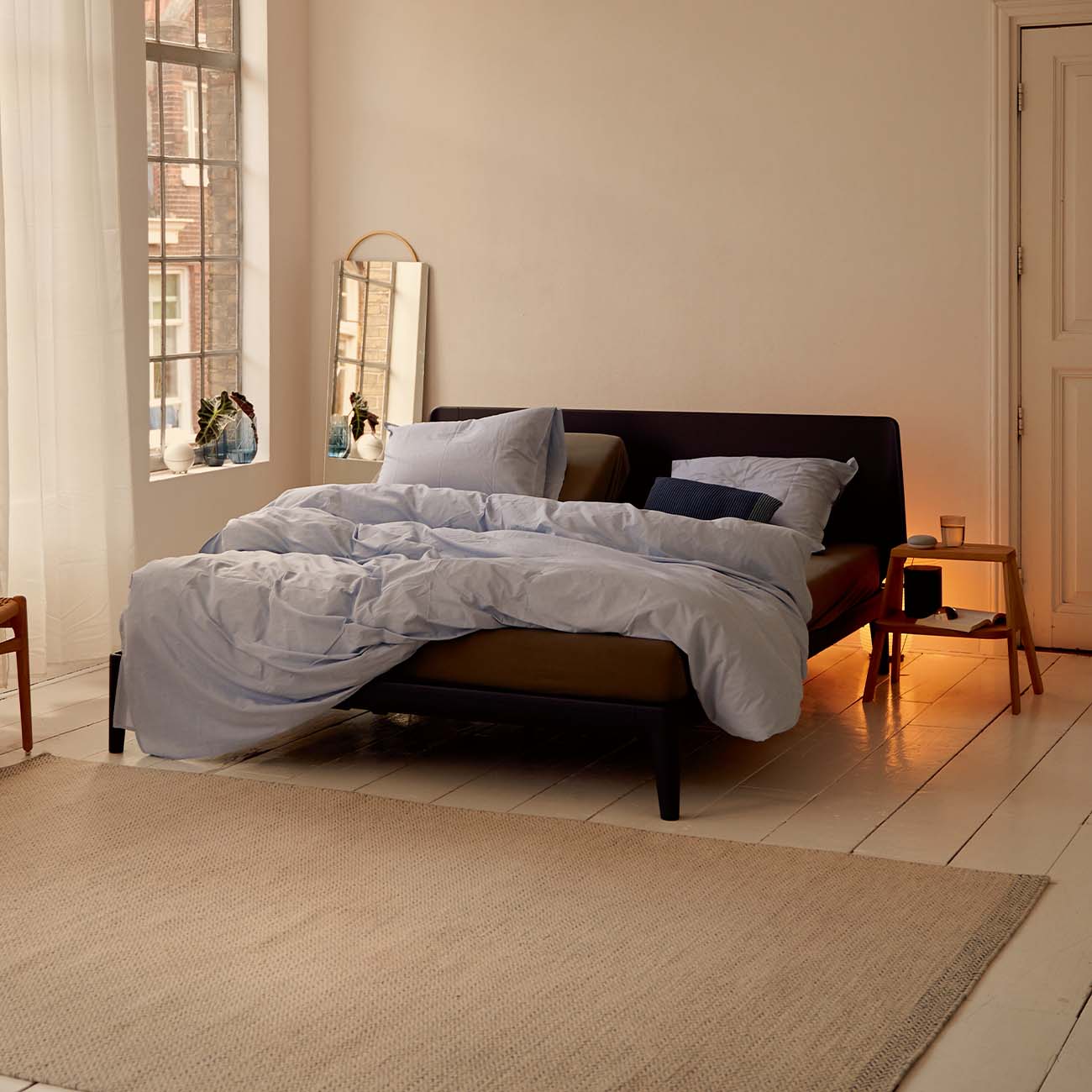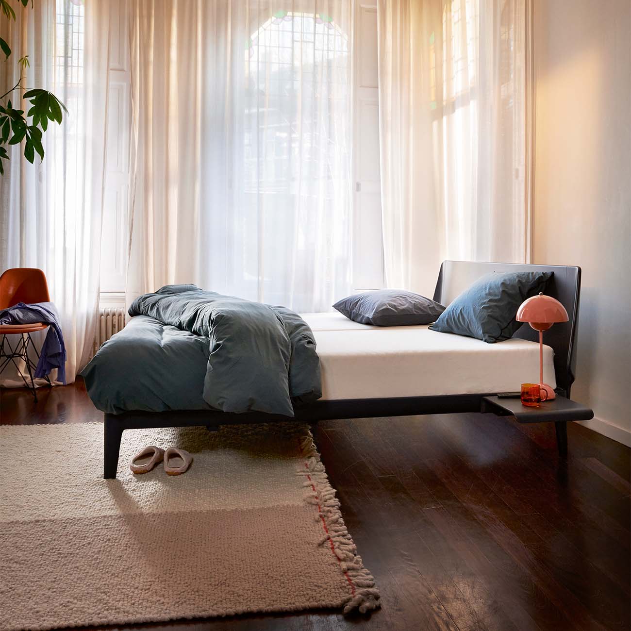 Dit bed is verkrijgbaar in verschillende afmetingen, passend bij iedere slaapkamer. De poedercoatkleuren bieden een moderne en stijlvolle uitstraling, terwijl de subtiele rondingen zorgen voor een tijdloos en geborgen gevoel.