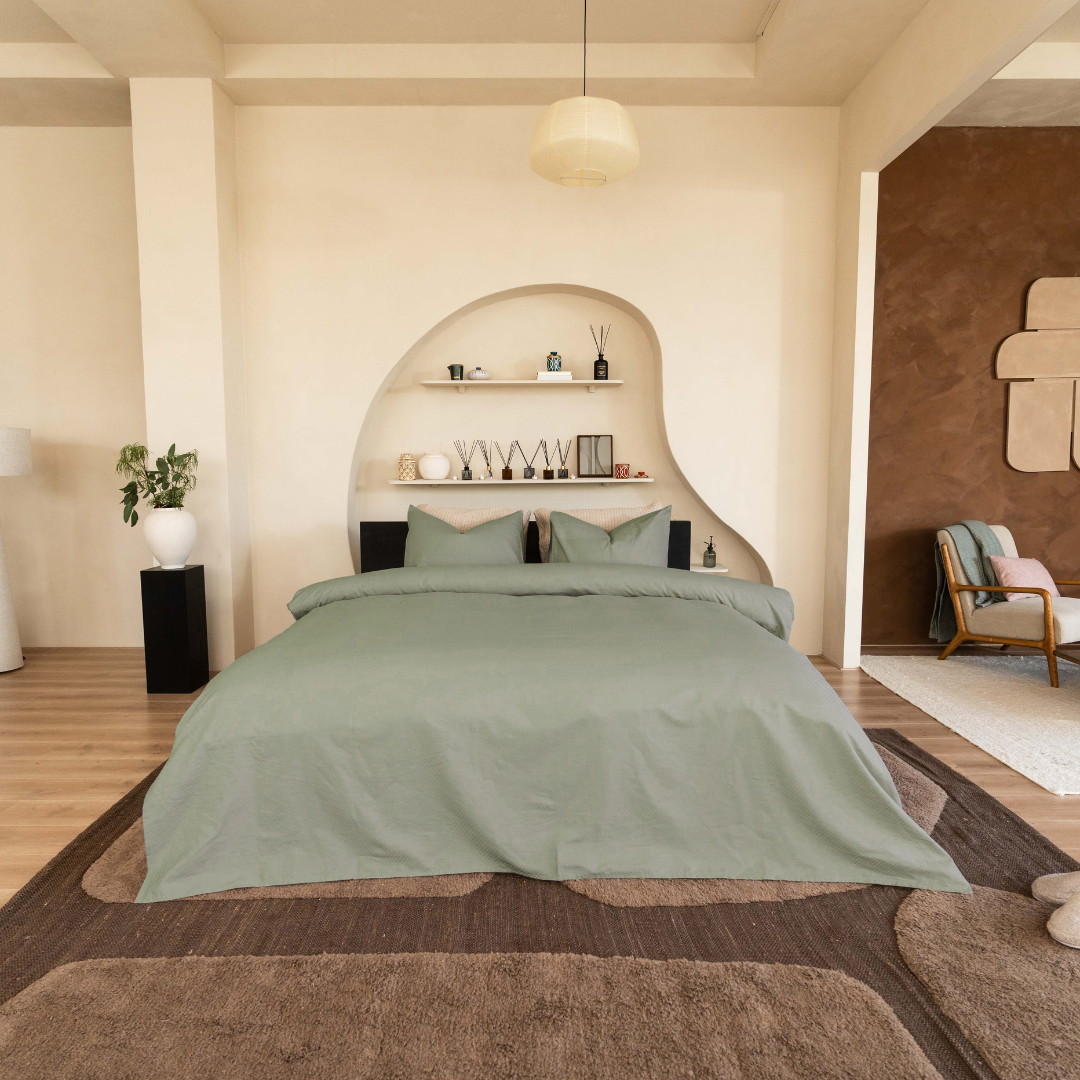 Kayori dekbedovertrek Otsu Katoensatijn 100% katoen olijfgroen